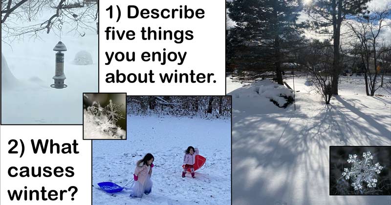 1- Describe five things you enjoy about winter.