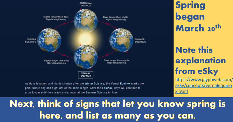 Think of signs that let you know spring is here, and list as many as you can.